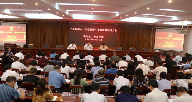张国秀结合学校实际对主题教育进行全面动员部署。她说,“不忘初心、牢记使命”主题教育是党中央重大战略部署。学校从今天开始到11月底,将在全校党员,特别是中层以上党员干部中,扎实开展“不忘初心、牢记使命”主题教育。她指出,要深刻认识开展“不忘初心、牢记使命”主题教育的重大意义。开展主题教育是推动习近平新时代中国特色社会主义思想武装全党的重大政治任务,是党加强自身建设的重大决策,是密切师生血肉联系的重大战略,是促进学校快速稳步发展的重大工程。